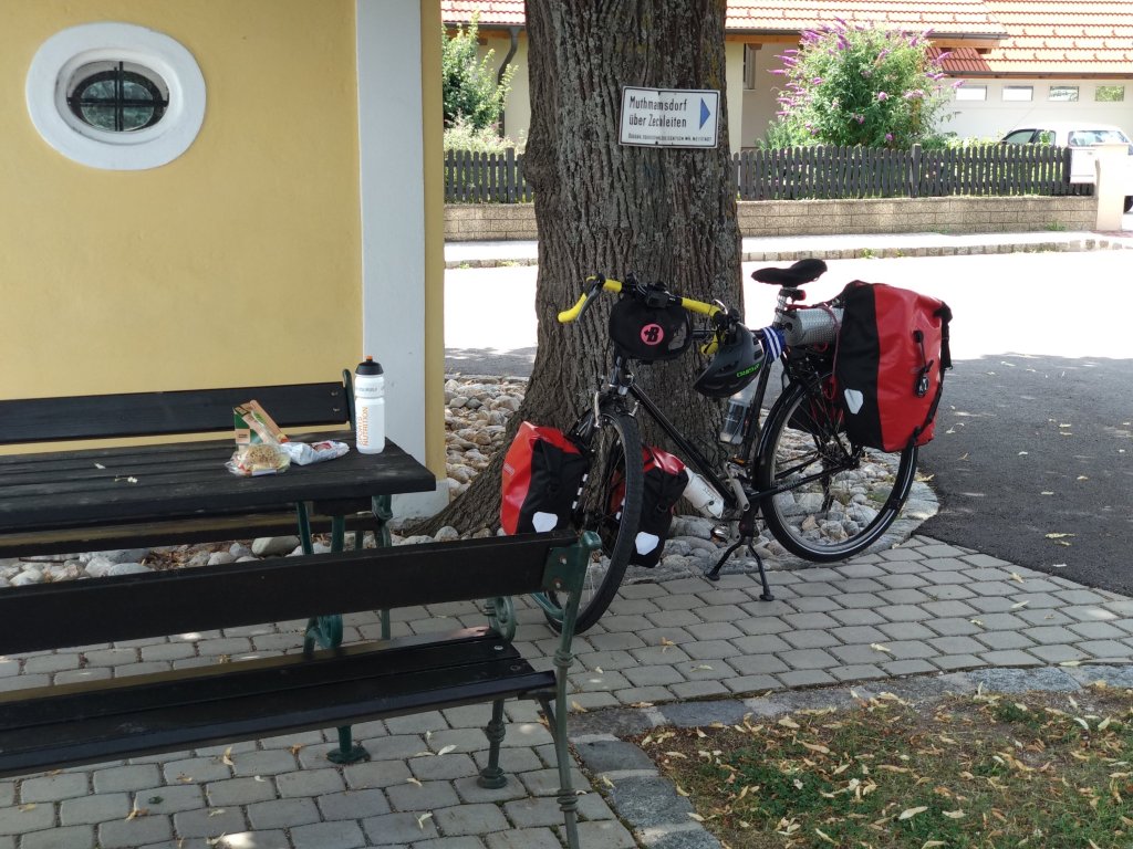 Erster Halt ist bei meinen Eltern in Maria Enzersdorf nach ca 13km. Nochmals frühstücken und weiter geht’s!